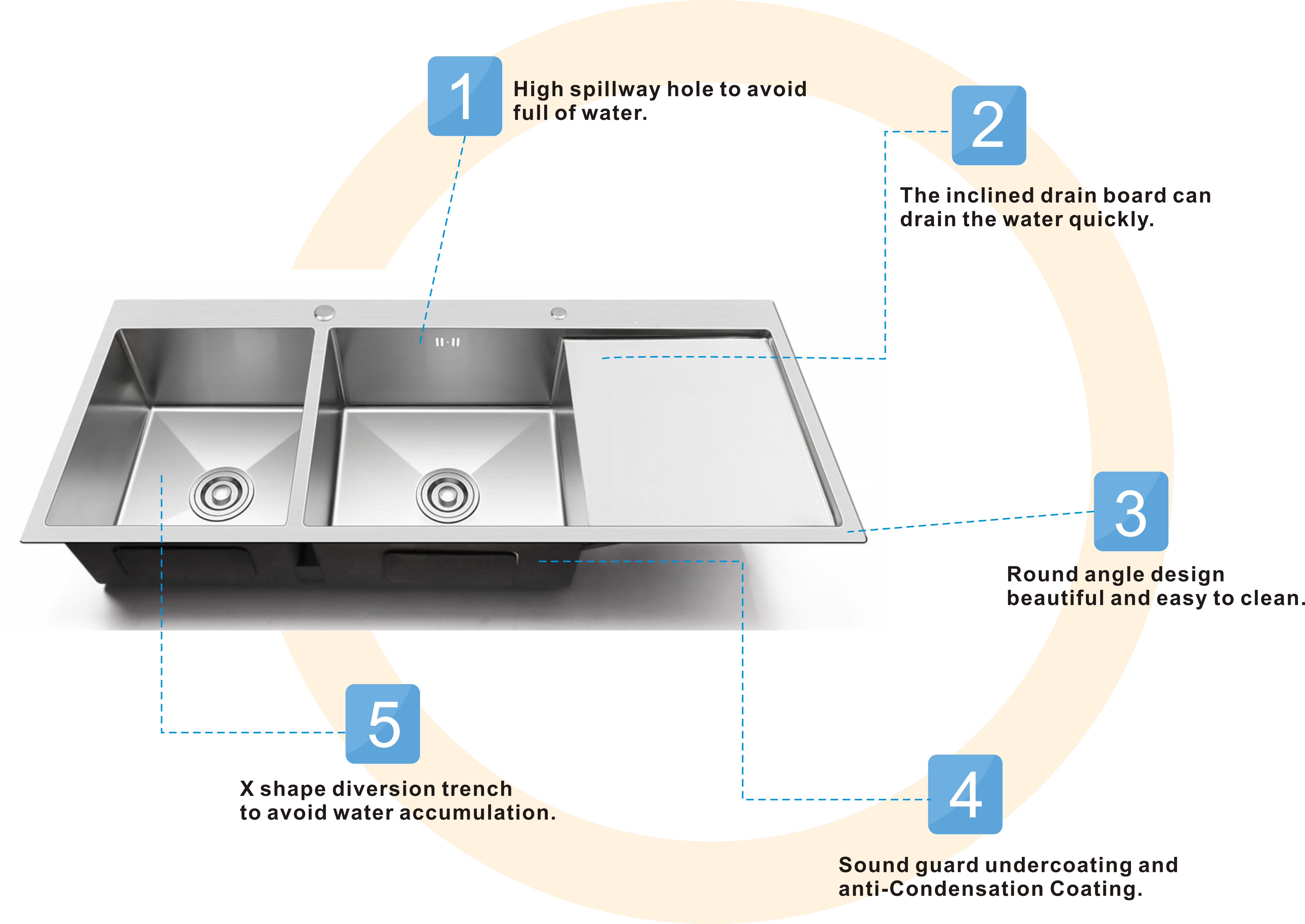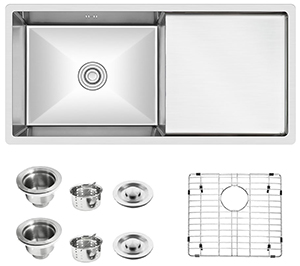 The handmade sink with draining board was designed which can fit all your tableware so that it's easier to clean.You can choose whether have a draining board according to your preferences and actual use.