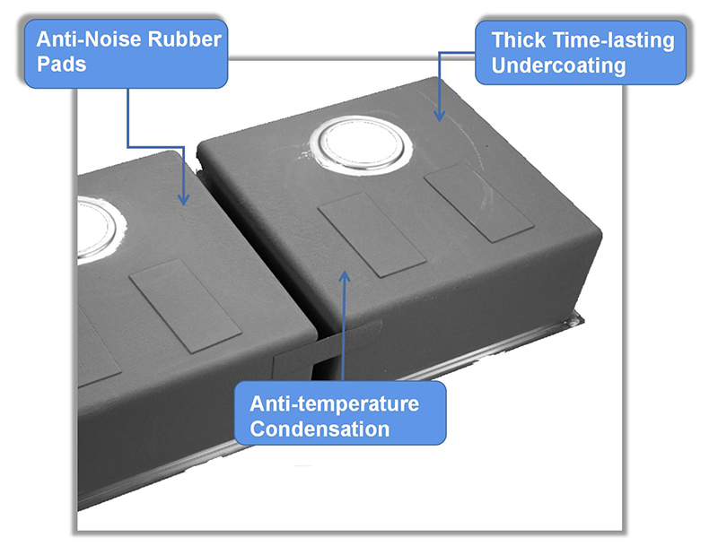 El fregadero geométrico con esquinas de radio cero construye un estilo moderno y duradero para su hogar. Construido con acero inoxidable SUS304 de primera calidad, el fregadero será duradero y resistente. Para crear un entorno de cocina tranquilo, todos nuestros modelos de fregaderos de acero inoxidable están equipados sonido de agua corriente.Se aplica una capa protectora adicional y una capa base de rociado anticondensación para evitar la acumulación de humedad. Accesorios de fregadero compatibles, métodos de instalación simples y diversos para satisfacer las necesidades de la mayoría de los lugares.