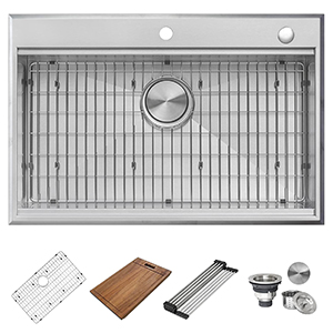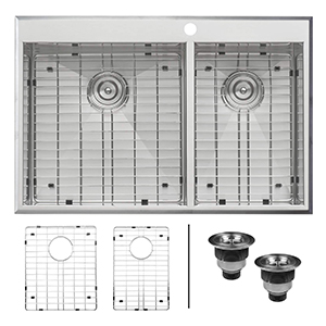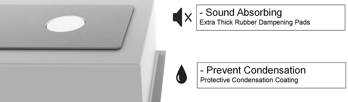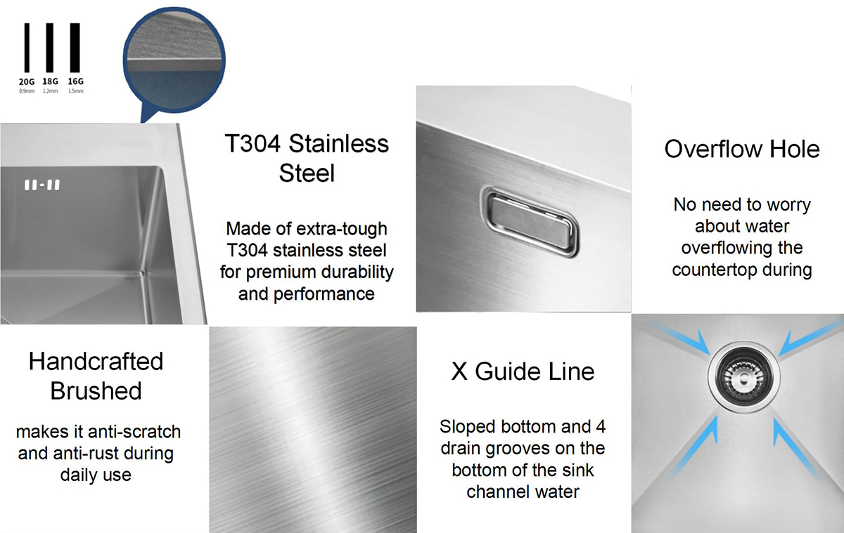 यह किचन सिंक मजबूत T304 स्टेनलेस स्टील से बना है, जो जंग-रोधी, जंग-रोधी, खरोंच प्रतिरोधी और टिकाऊ है।गहरा डिज़ाइन आपको प्लेटों, पैन और पैन के ढेर को समायोजित करने की अनुमति देता है। साइलेंसिंग पैड सिंक में ध्वनि और कंपन को कम कर सकता है, ताकि सिंक को शांत किया जा सके। इस टॉपमाउंट सिंक में टेबल पर खुले किनारे हैं, जो उपयुक्त है टेबल सामग्री की किसी भी शैली के लिए;इसे काउंटरटॉप को नुकसान पहुंचाए बिना या पाइप को दोबारा स्थापित किए बिना आसानी से स्थापित और हटाया जा सकता है। अन्य उत्पादों की तुलना में, इस उत्पाद का सबसे चमकीला बिंदु इसके विशिष्ट किनारों का डिज़ाइन है। बेवेल्ड किनारे का डिज़ाइन रसोईघर को अधिक आधुनिक, न्यूनतम दिखता है लेकिन उबाऊ नहीं है।