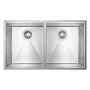 सीई प्रमाणित हस्तनिर्मित स्टेनलेस स्टील 304 बेवेल्ड एज आर्ट नल के साथ डबल बाउल स्क्वायर सिंक