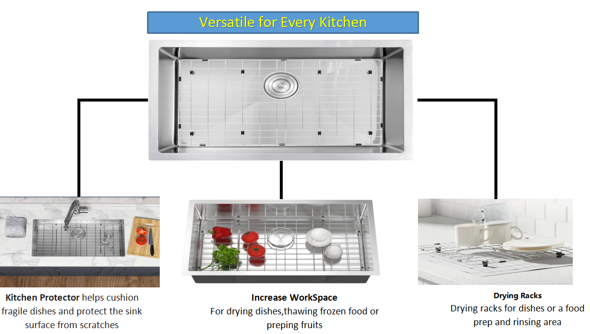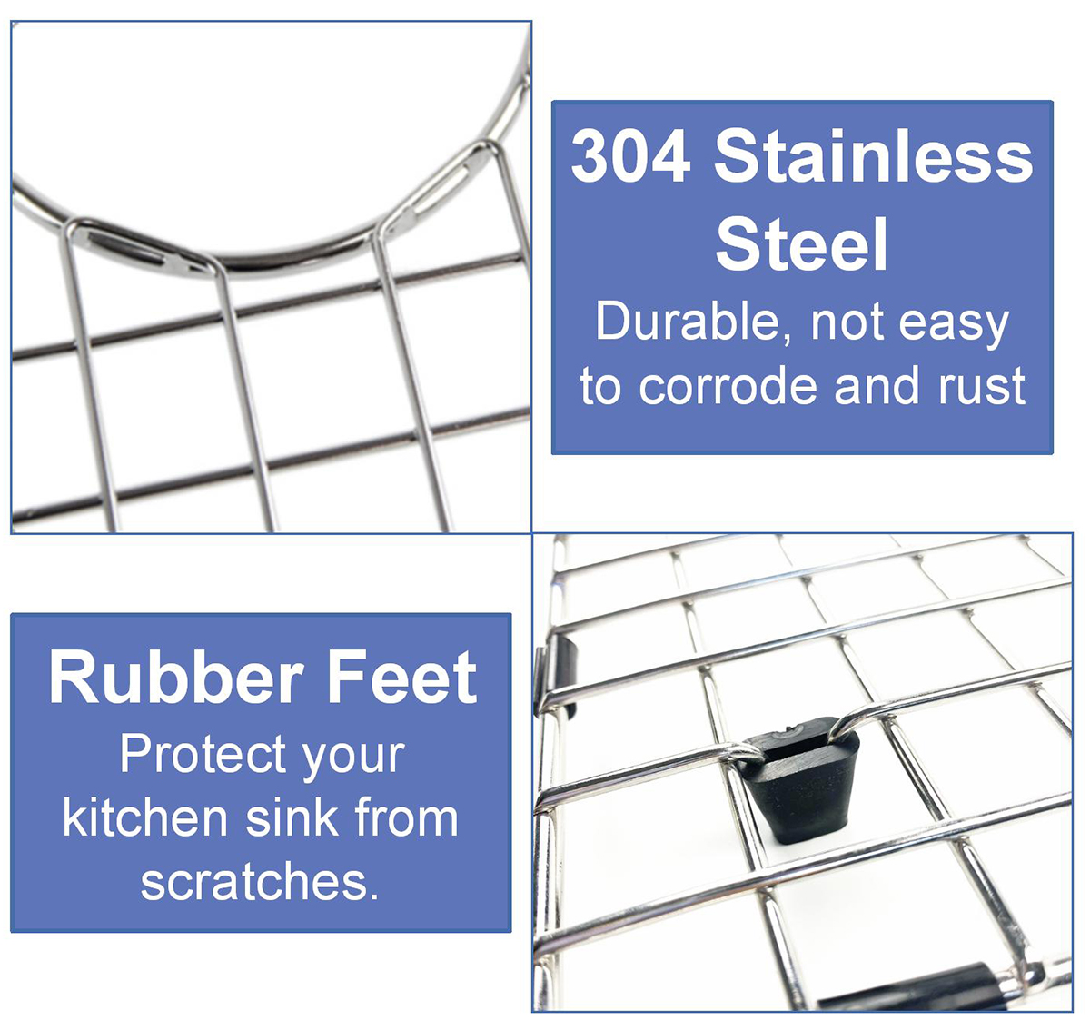 उच्च गुणवत्ता वाले स्टेनलेस स्टील से बना, यह स्टेनलेस स्टील बॉटम ग्रिड विशेष रूप से रसोई सिंक के लिए आकार में है ताकि एकदम सही फिट सुनिश्चित किया जा सके और खरोंच और डेंट से अंतिम सुरक्षा प्रदान की जा सके।उठी हुई ग्रिड जल निकासी को साफ रखने के लिए टेबलवेयर को उठा सकती है, ताकि आपका सिंक तेजी से सूख सके और साफ रहे।नरम सुरक्षात्मक बफ़र सिंक की सतह को खरोंचने और घिसने से रोक सकता है।