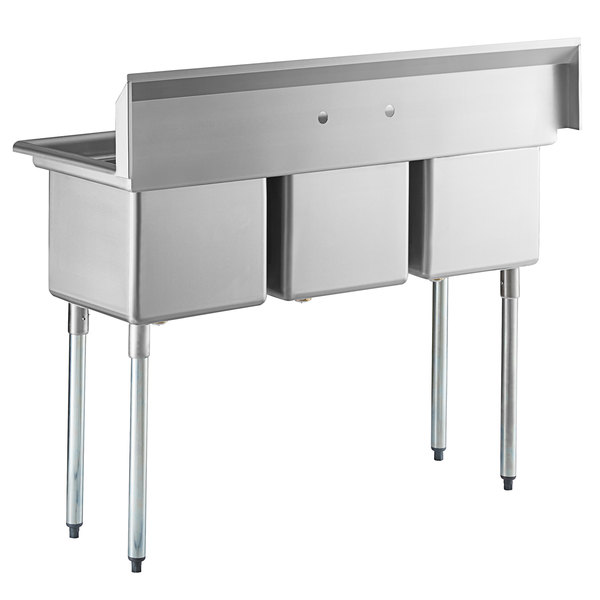 Wastafel komersial baja tahan karat multifungsi dengan tiupan tiga kali ini menawarkan mangkuk terpisah yang Anda perlukan untuk membersihkan piring secara efisien.