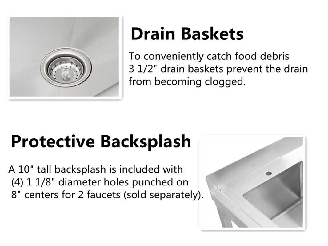 Berbagai penggunaan: Wastafel komersial penting untuk restoran, klinik, sekolah, pabrik, pabrik, dan fasilitas komersial lainnya.Tiga kompartemen wastafel ini memungkinkan Anda menyelesaikan seluruh proses mencuci piring dengan mudah - mencuci, membilas, dan membersihkan - di dalam unit yang sama.